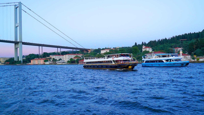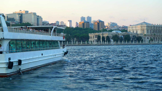 An Bord Ihres Bootes ziehen Sie an Attraktionen wie dem Dolmabahce-Palast, der Ortaköy-Moschee, der Bosporus-Brücke, dem Cıragan-Palast sowie an schönen Palästen und Villen vorbei.