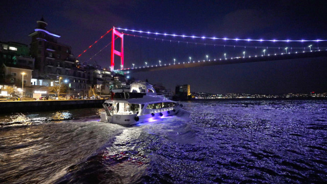 - Fahren Sie unter der leuchtenden Bosporus-Brücke hindurch