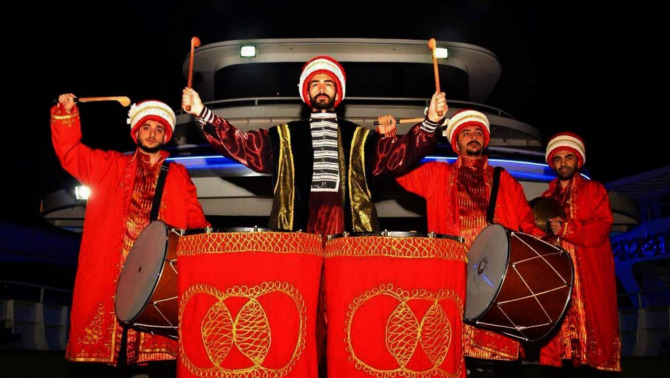 Accueil par un ensemble militaire ottoman ✓ Performance de danse soufie et alévie ✓ Danse des odalisques ✓ Danse de la dague ✓ Spectacle de danse orientale du ventre ✓ Spectacle de rythme et de lumière ✓ Danses folkloriques ✓