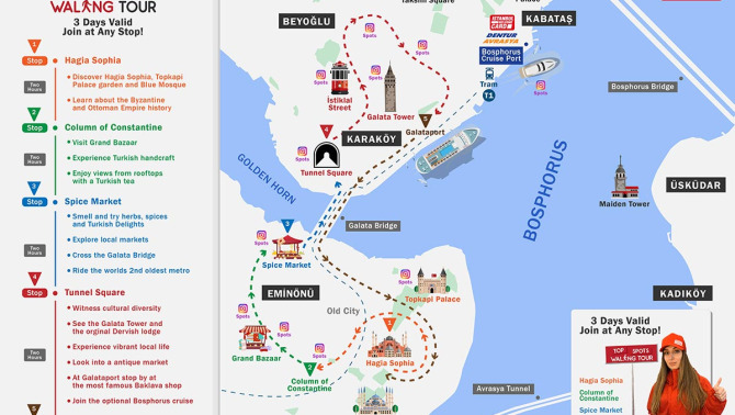 Наслаждайтесь безлимитной экскурсией по достопримечательностям в данном пешеходном туре по самым популярным местам, откройте для себя самое лучшее в Стамбуле, получите удовольствие от увлекательных экскурсий, исследуйте местные рынки, попробуйте турецкие сладости и посетите самые популярные места из Instagram.