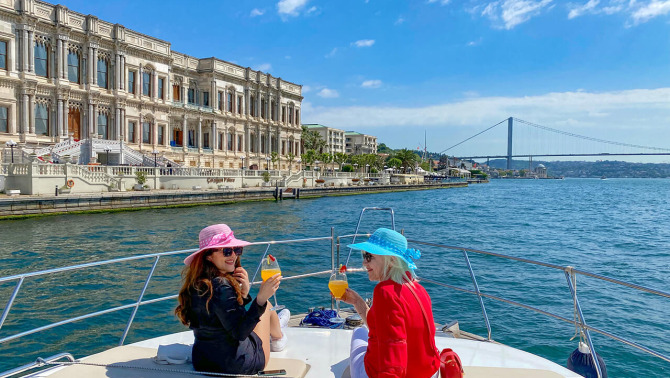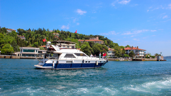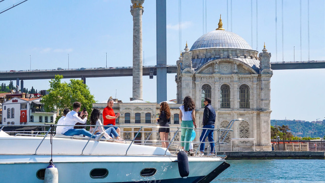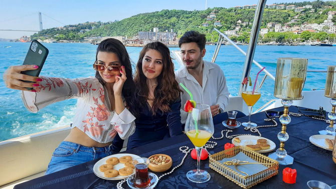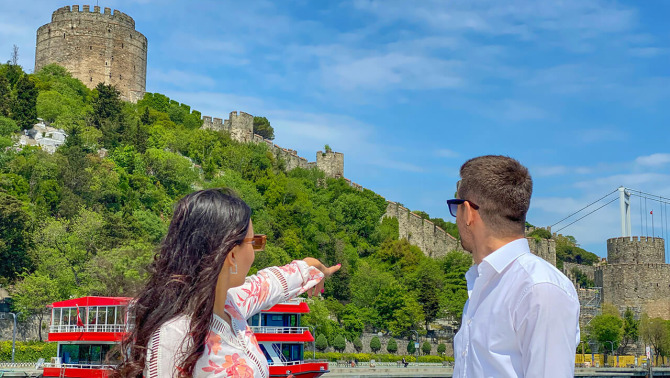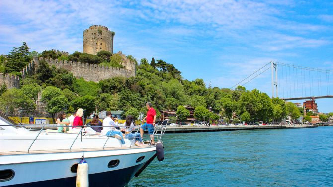 Learn informative and entertaining insights from an experienced tour guide about the sites along the route. Pass by Istanbul’s main attractions on the European side like the magnificent Dolmabahce Palace, Besiktas, Ciragan Palace, Ortaköy Mosque, Bosphorus Bridge and much more. After the Bosphors bridge your boat will head towards the Asian coast line. At the Asian side you willl admire ancient castles, famous hills, and parks, as well as spectacular seaside residences from different centuries.