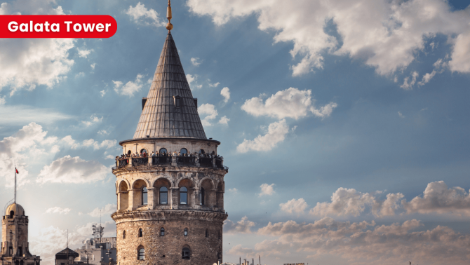 An entry ticket to Istanbul's iconic 700-year-old medieval tower, with express elevator access to the panoramic lookout platform offering 360-degree views of the Bosphorus, the Golden Horn, and the historic skyline.